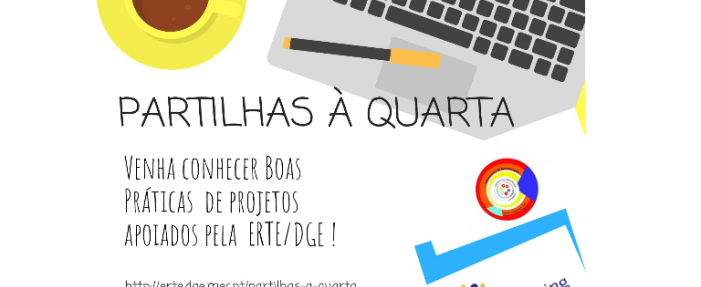 Neste ano letivo, dar-se-á continuidade à iniciativa “Partilhas à quarta” com o propósito de divulgar experiências de ensino e de aprendizagem inovadoras, desenvolvidas nas escolas, no âmbito de projetos apoiados pela ERTE/DGE.